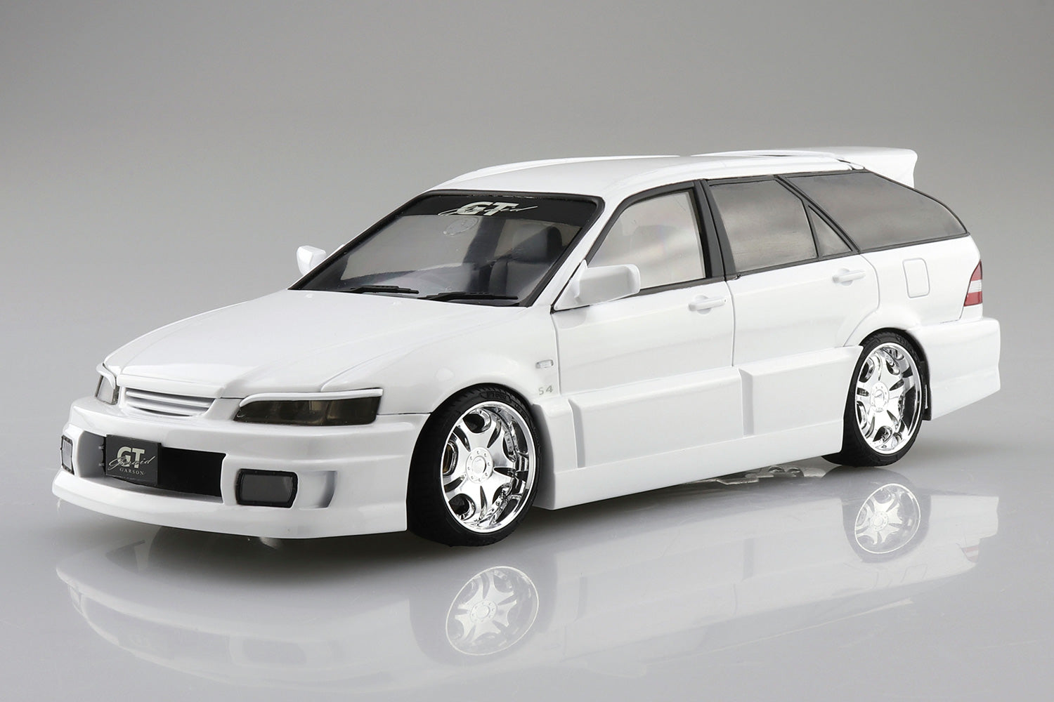 Recreate the 1997 Garson Geraid GT CF6 Honda Accord Wagon in 1/24 scale with this detailed plastic model kit from Aoshima’s Tuned Car Series. Features full Garson Geraid aero specs including front and rear bumper spoilers, eyeline, side steps, door panels, rear wing, and muffler. Includes aftermarket 19-inch aluminum wheels and window frame masking stickers for an authentic finish.