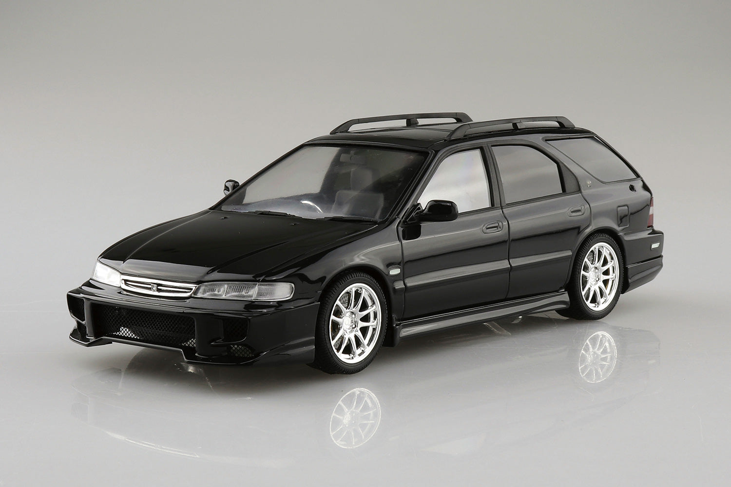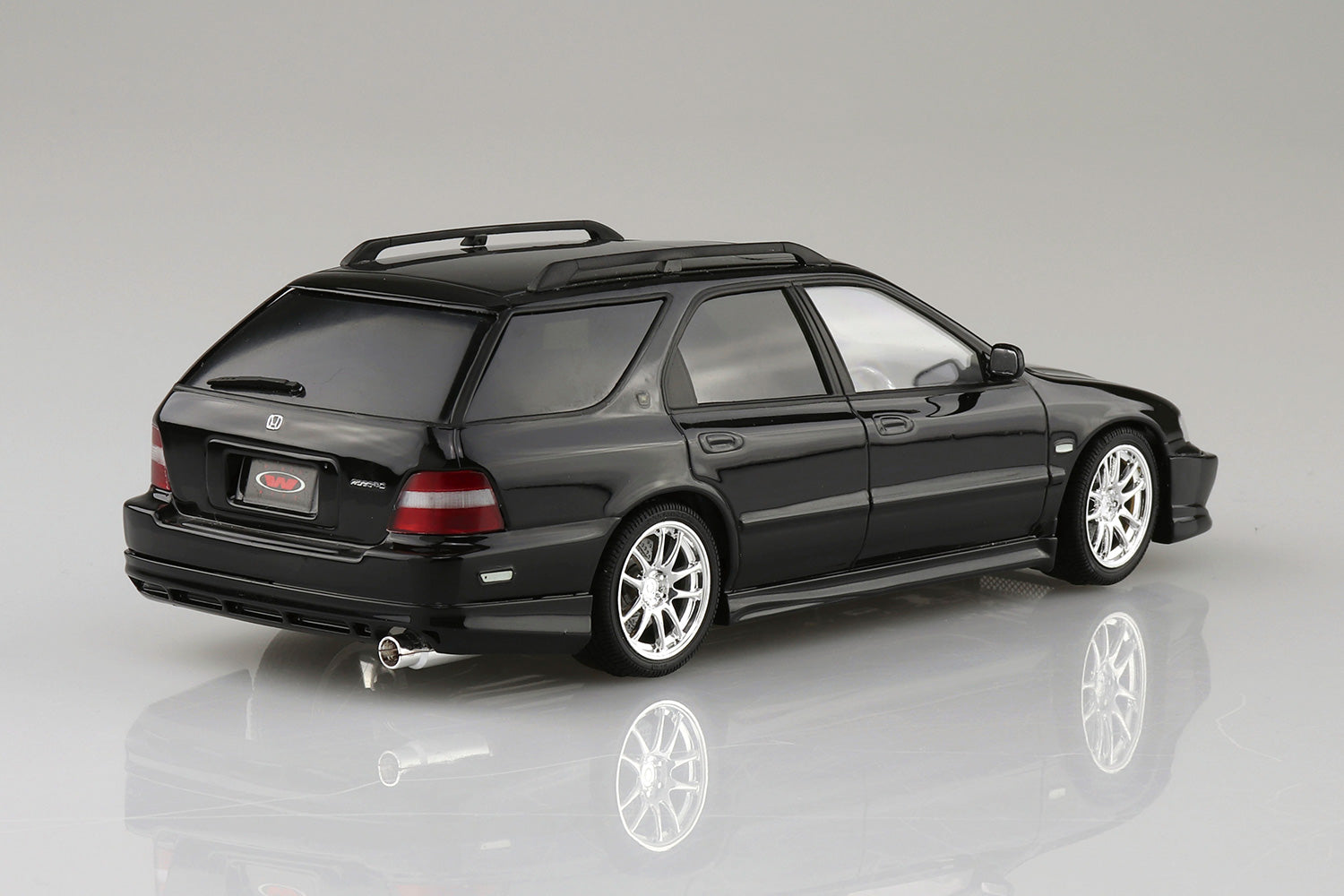 Recreate the 1996 WINGSWEST CF2 Honda Accord Wagon with this 1/24 scale plastic model kit from Aoshima’s Tuned Car Series. Featuring detailed aero parts including front bumper spoiler, side steps, rear under spoiler, and muffler. Comes with aluminum wheels and window frame stickers for a realistic and customizable build.