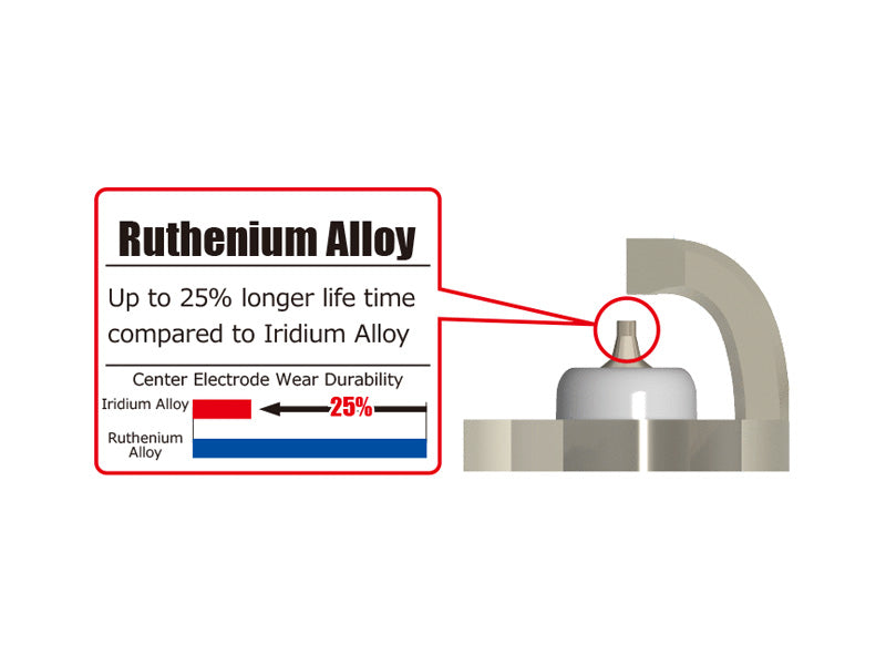 Featuring a 0.6mm ruthenium alloy center electrode (reduced from the typical 0.8mm), voltage requirement is lowered while ignition performance is significantly improved. The platinum-tipped ground electrode, reinforced with a copper core, enhances durability, combustion quality, and resistance to temperature rise. The shortened and optimized outer electrode design increases vibration resistance and long-term reliability.
